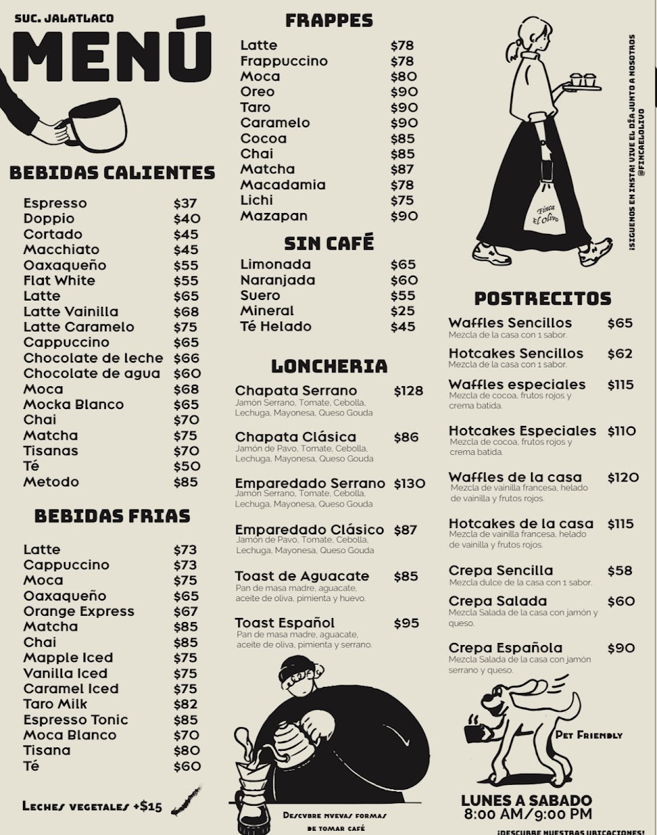 Café Finca El Olivo in Oaxaca de Juárez is a gem for coffee lovers and food enthusiasts alike. This espresso bar and bakery serves an impressive variety of handcrafted drinks, from classic espressos and flat whites to indulgent frappes like Matcha, Oreo, and Mazapán. Their hot beverages menu blends traditional Mexican flavors such as the Oaxaqueño coffee with global favorites like Chai and Latte Caramelo, offering a rich and diverse tasting experience.